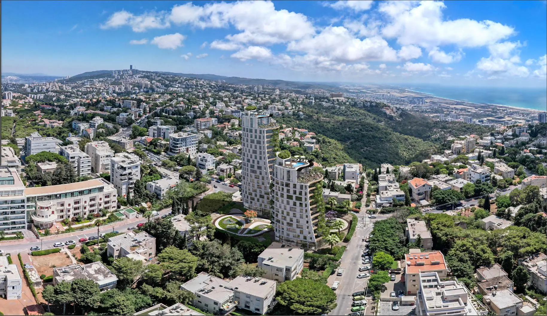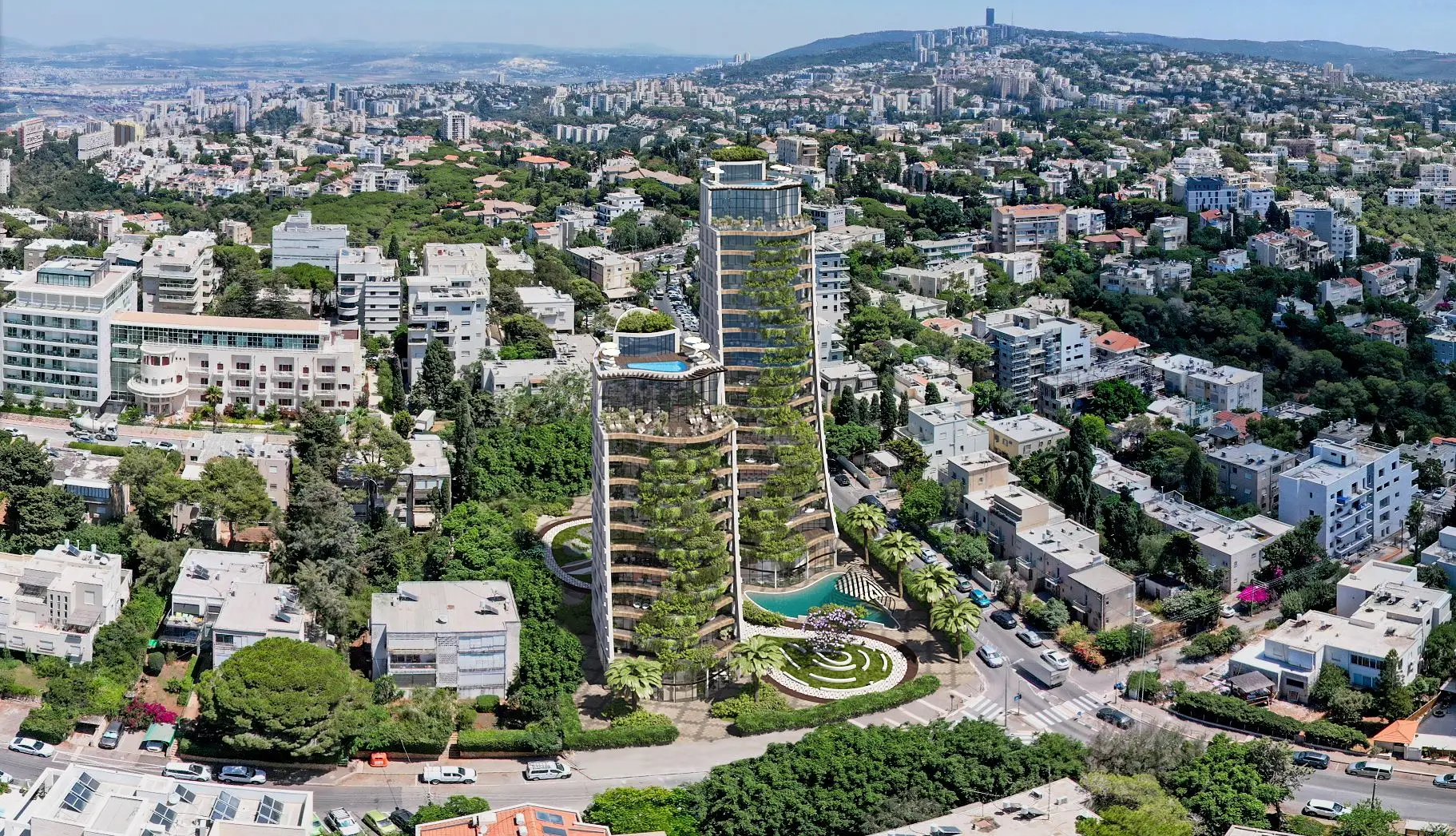 .רמת גימור פוטוריאליסטי | המחשת פרויקט מזויות שונות | שתילה של מבני חוץ בסביבה קיימת
